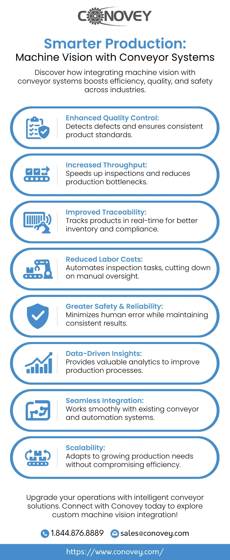 Discover how integrating machine vision with conveyor systems boosts efficiency, quality, and safety across industries. https://www.conovey.com/