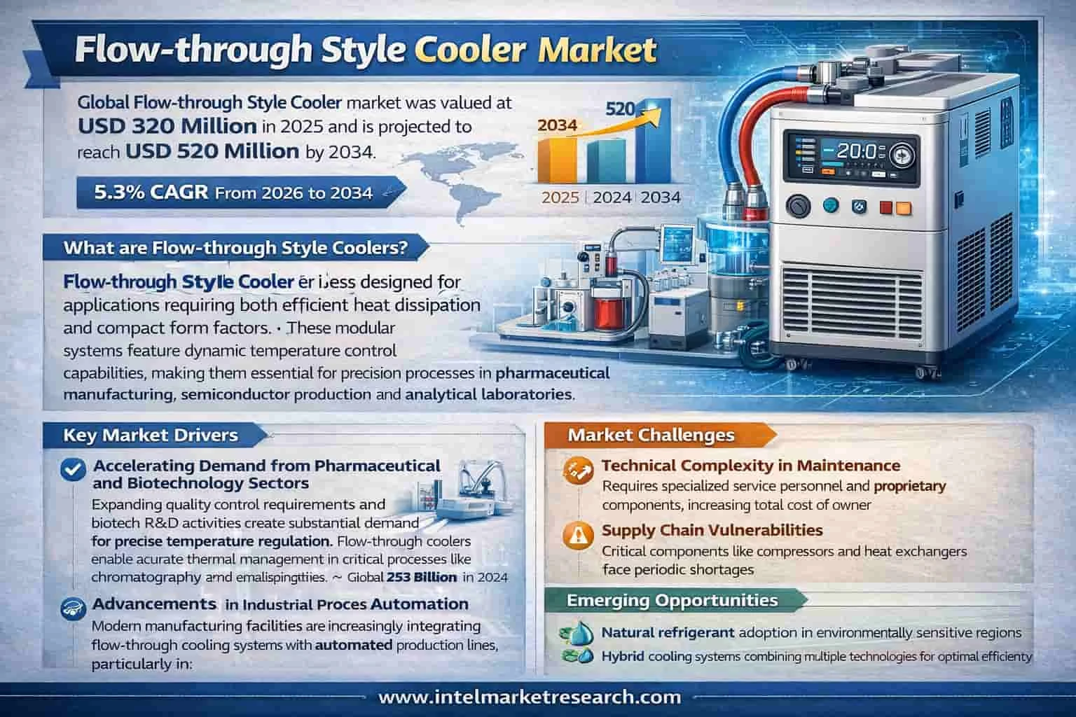 Top 10 Leading Players in Flow-through Style Cooler Market Projected to Achieve a 5.3% CAGR by 2034 Global Flow-through Style Cooler market was valued at USD 320 million in 2025 and is projected to reach USD 520 million by 2034, growing at a steady CAGR of 5.3% during the forecast period (2026–2034). 📥 Download FREE Sample Report: https://www.intelmarketresearch.com/download-free-sample/31880/flow-through-style-cooler-market 🌐 Website: https://www.intelmarketresearch.com 📞 Asia-Pacific: +91 9169164321 🔗 LinkedIn: Follow Us